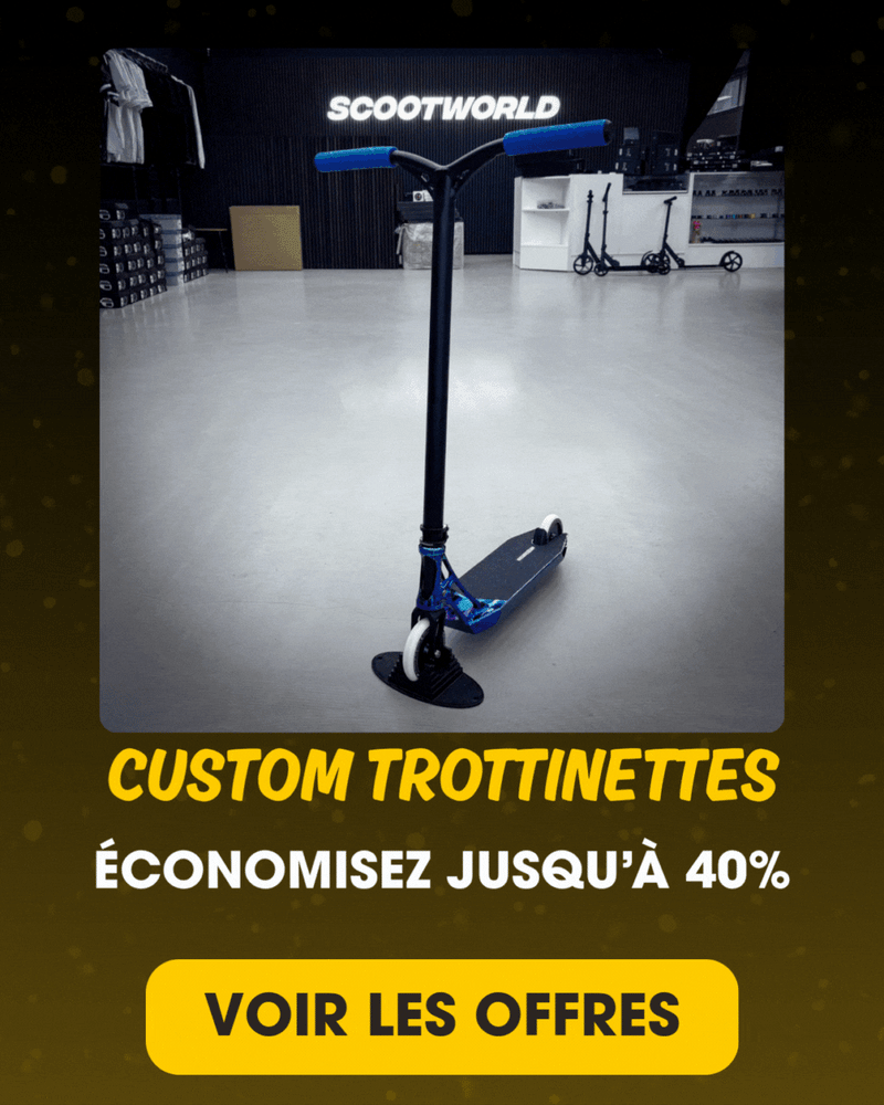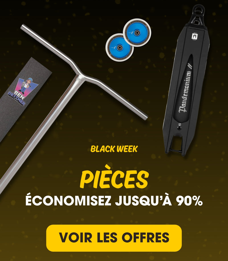 Que vous achetiez votre première trottinette freestyle, changiez vos roues ou construisiez un setup entièrement custom, la Black Week chez ScootWorld est le meilleur moment pour faire de grosses économies et passer au niveau supérieur.